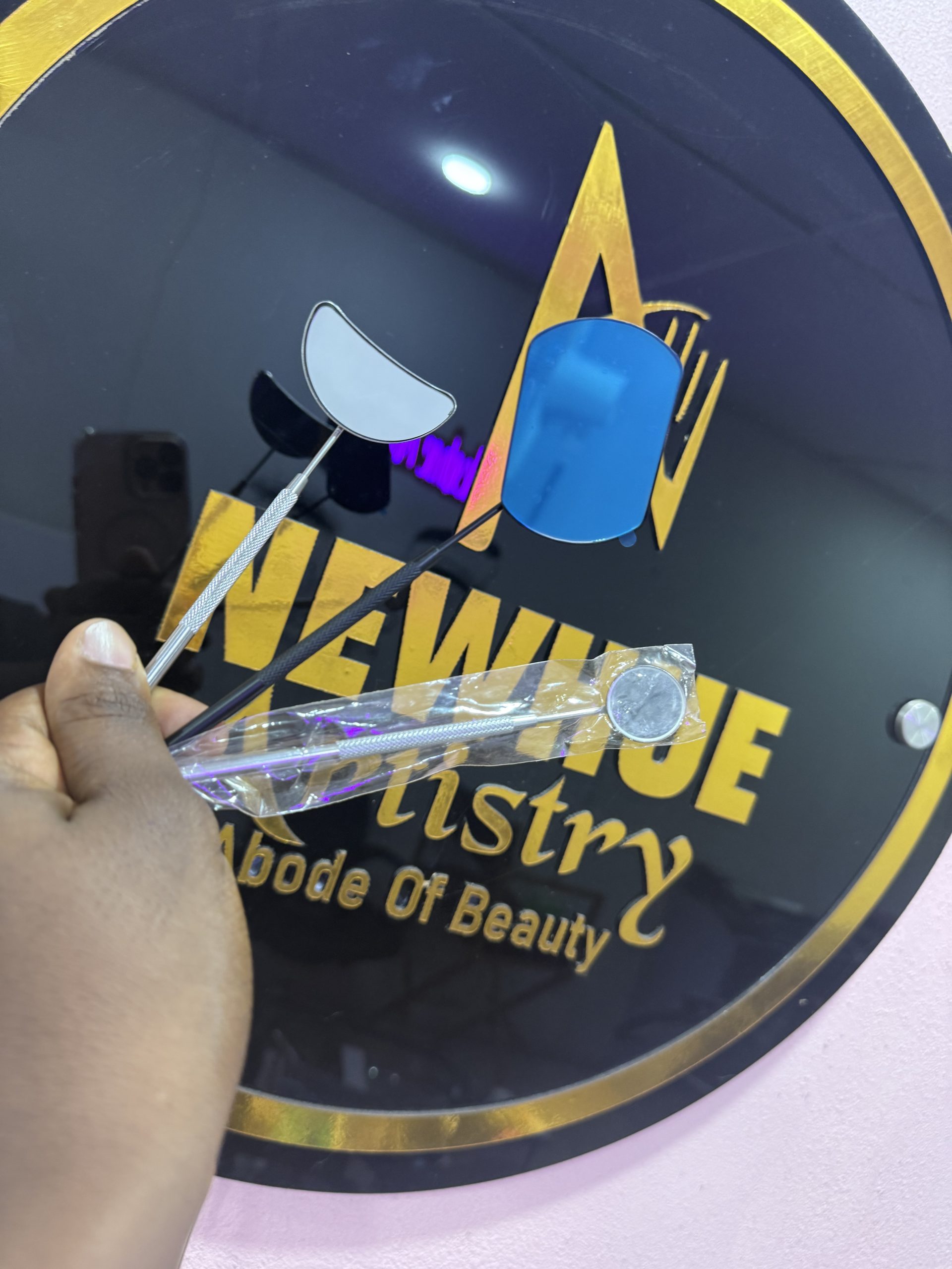 professional lash inspection mirror designed for precision and clear visibility. Ideal for checking lash placement and symmetry during extension. Available in half moon, round and square shapes